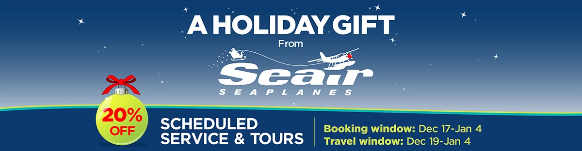 Celebrate the season with 20% percent off scheduled flights and scenic tours, as well as 40% off in terminal merchandise. Whether you are heading home for the holidays or planning a winter adventure, this limited time offer makes it even easier to explore the coast.