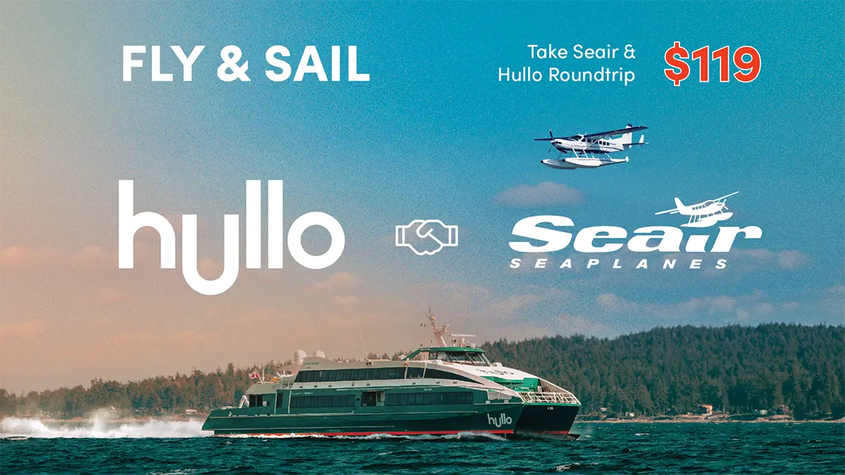 Ready for the easiest way to explore Vancouver and Nanaimo in one trip? Our Fly & Sail package pairs a scenic seaplane flight with a smooth Hullo ferry ride, giving you a full roundtrip for only $119 per person.